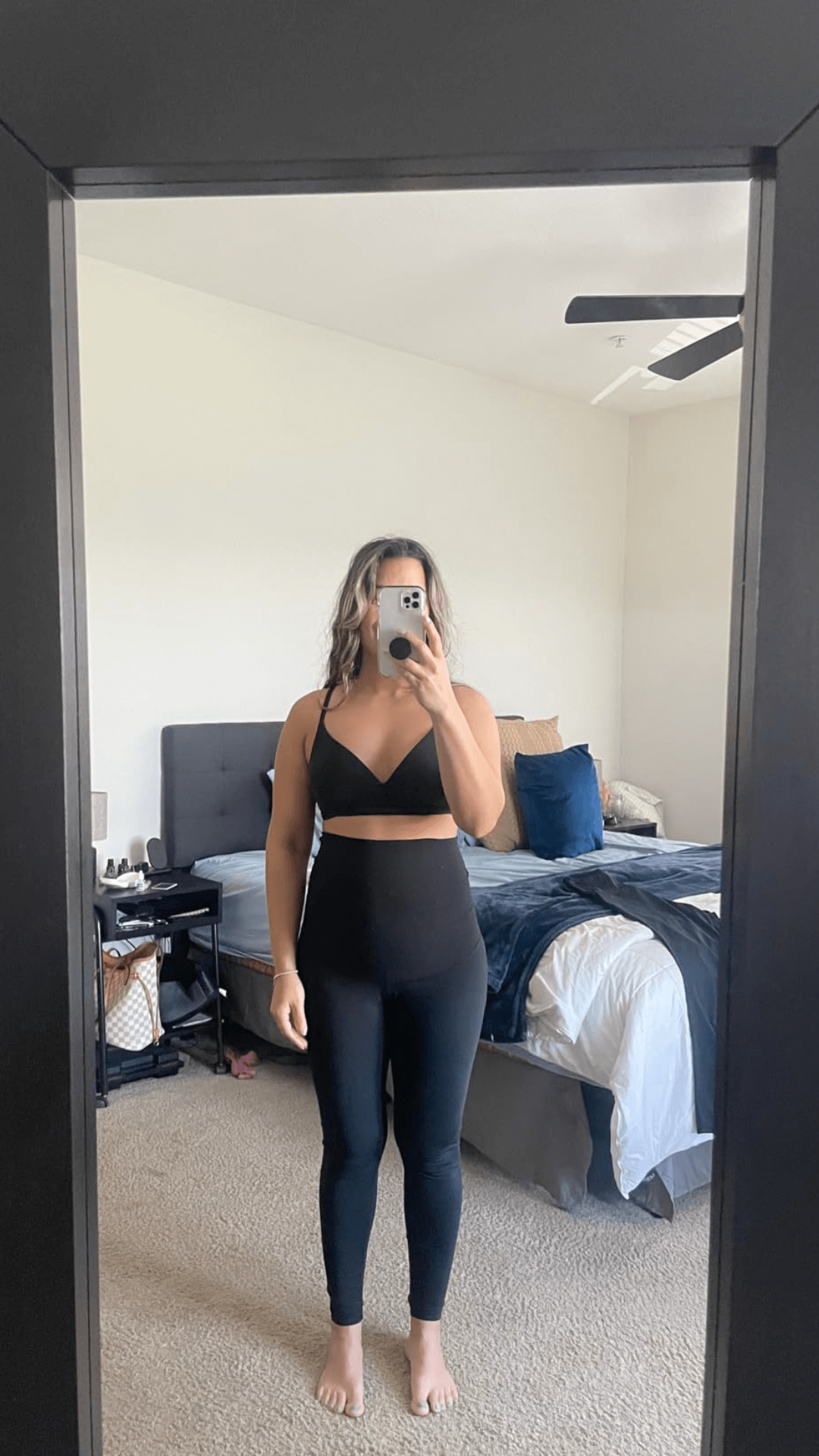 The leggings are designed with an over-the-belly panel that provides gentle back support and stays in place during activities, reducing the need for adjustments.